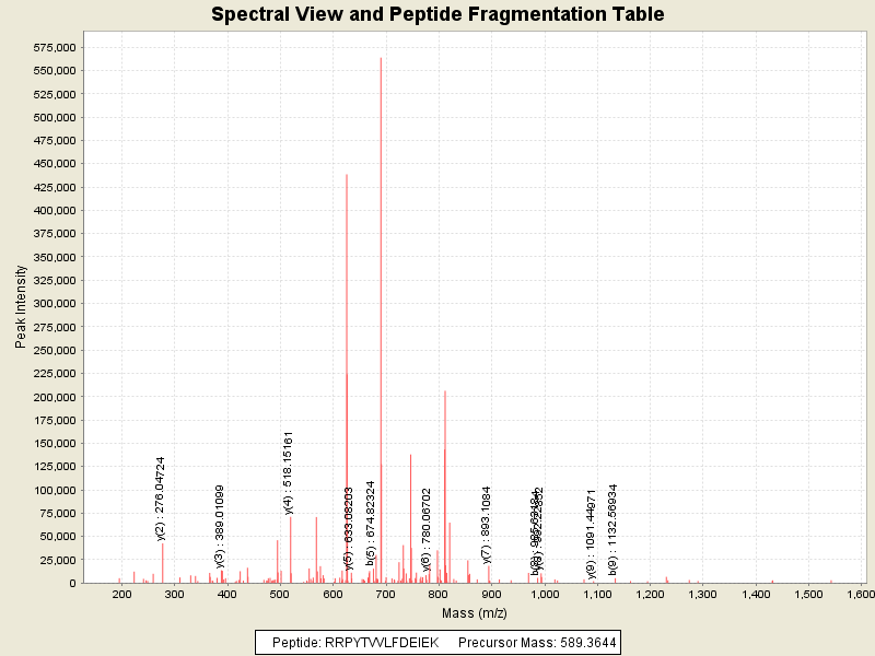 Observed intensity of peptide: 1633958.0