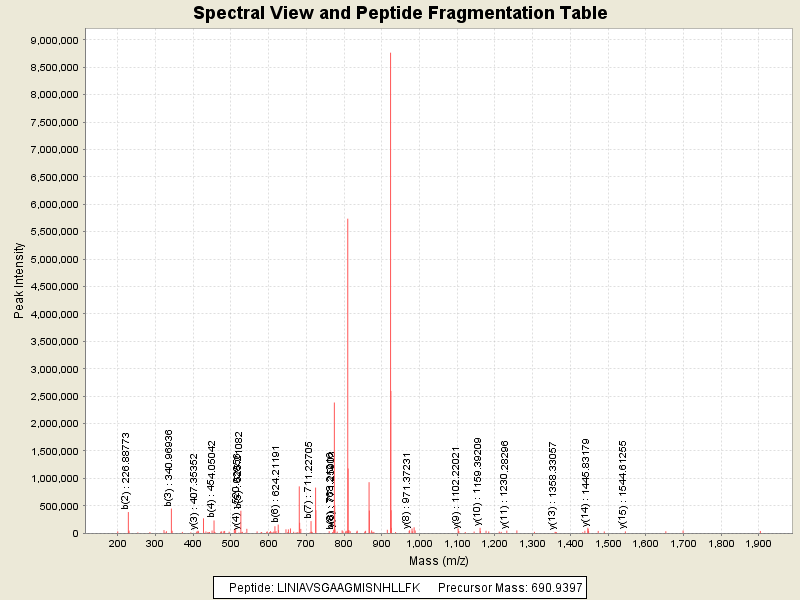 Observed intensity of peptide: 6132629.0