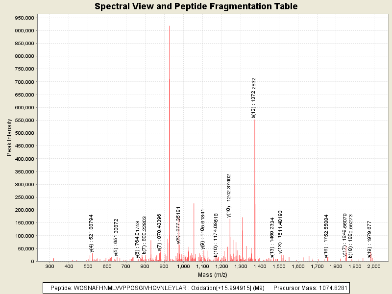 Observed intensity of peptide: 5721675.0