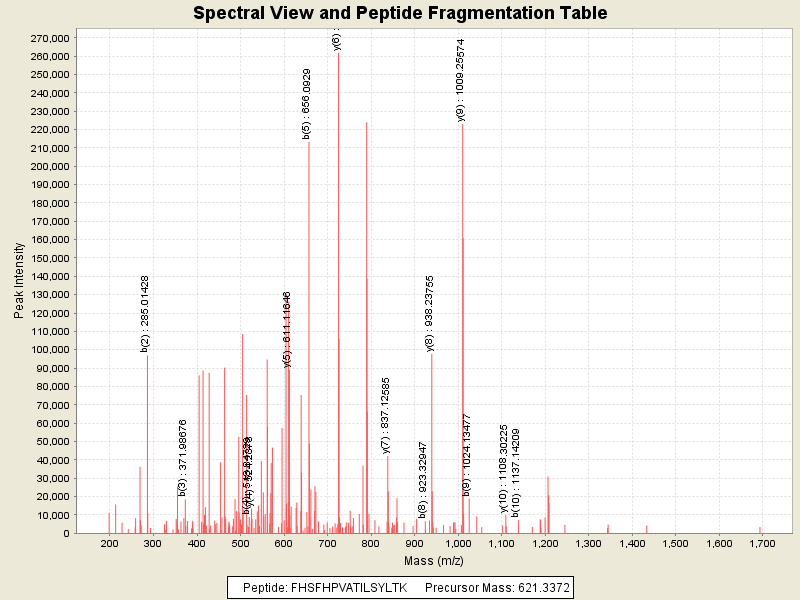 Observed intensity of peptide: 1520692.0