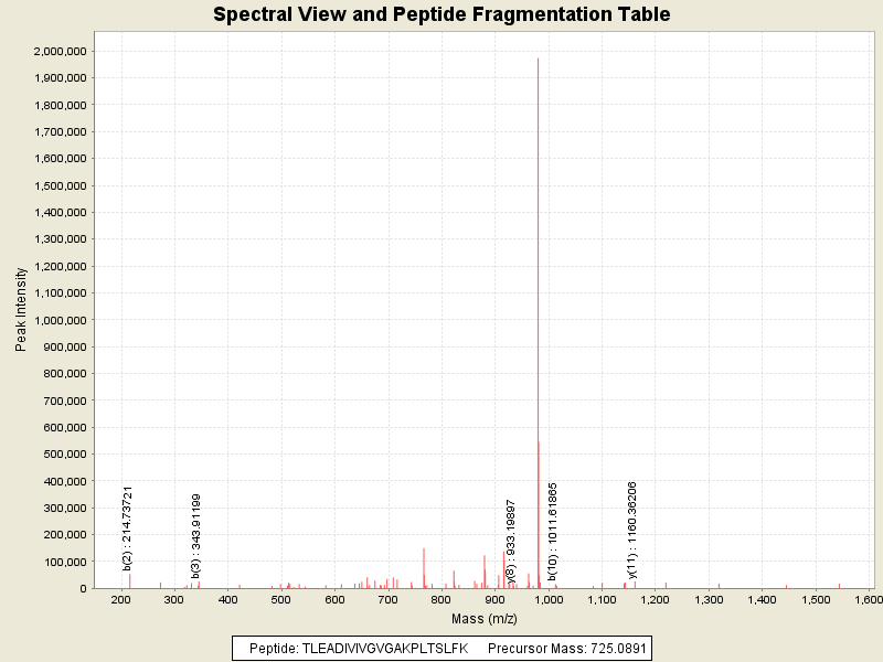 Observed intensity of peptide: 1.6181504E7
