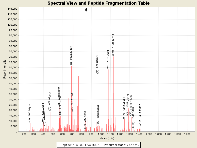 Observed intensity of peptide: 890748.0