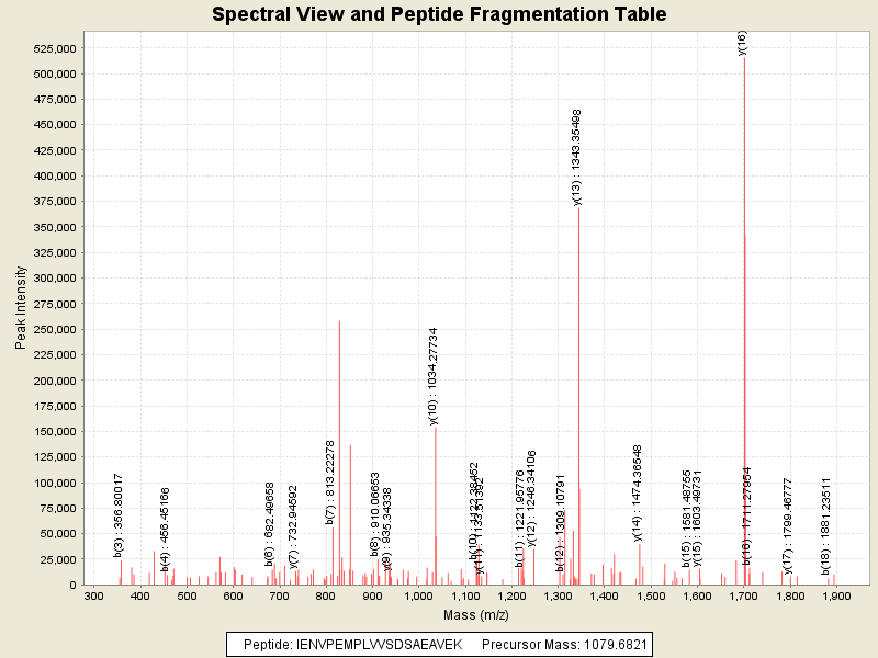 MS/MS Fragmentation of: IENVPEMPLVVSDSAEAVEK