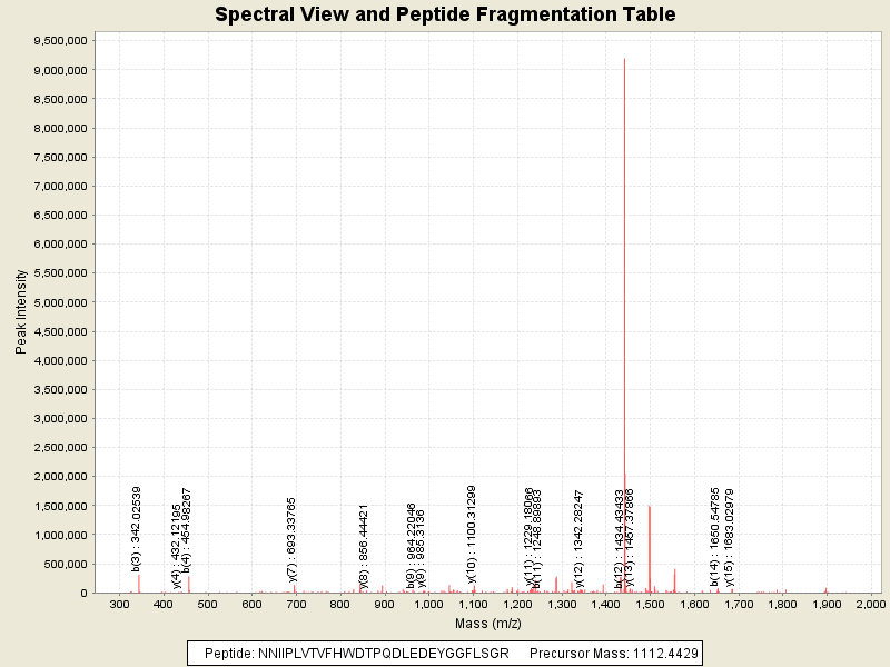 MS/MS Fragmentation of: NNIIPLVTVFHWDTPQDLEDEYGGFLSGR