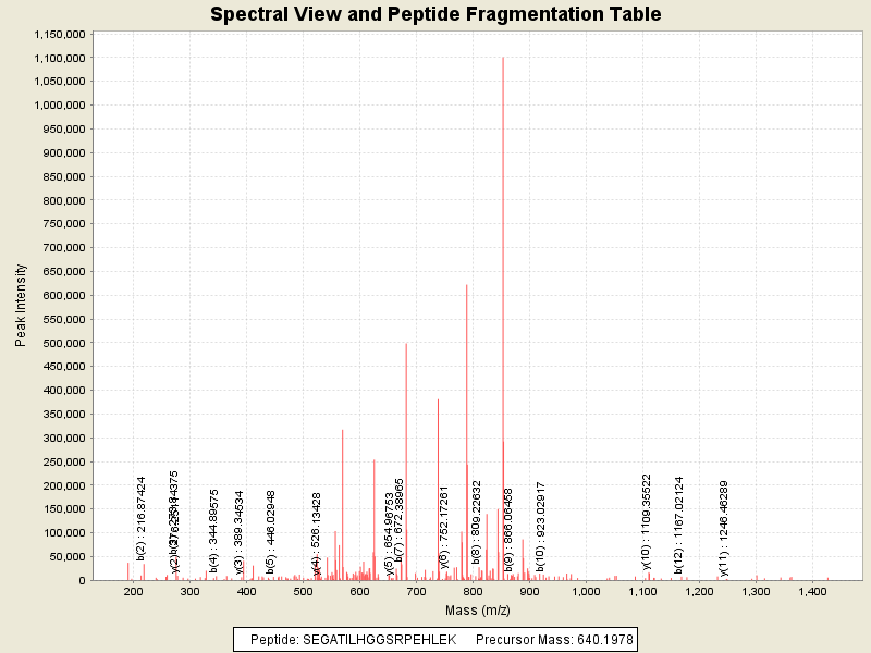 Observed intensity of peptide: 3185376.0