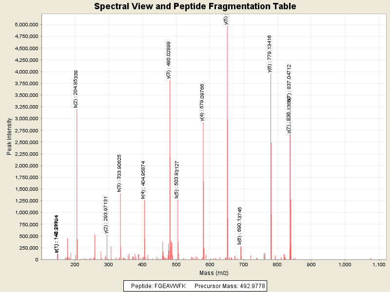 Observed intensity of peptide: 1.36273984E8