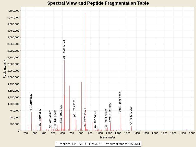 MS/MS Fragmentation of: LFVLDYHDLLLPYVNK