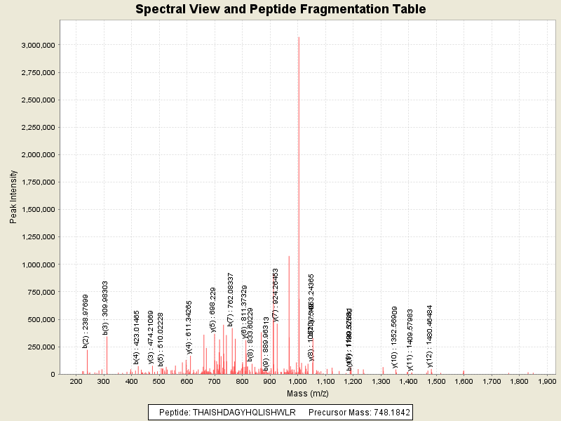 Observed intensity of peptide: 8498300.0