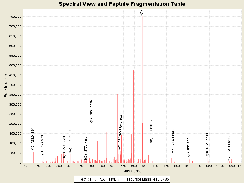 Observed intensity of peptide: 3194217.0
