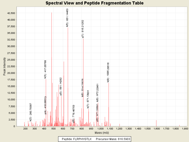 Observed intensity of peptide: 812616.0