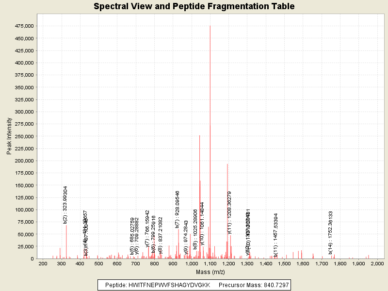 Observed intensity of peptide: 2863945.0