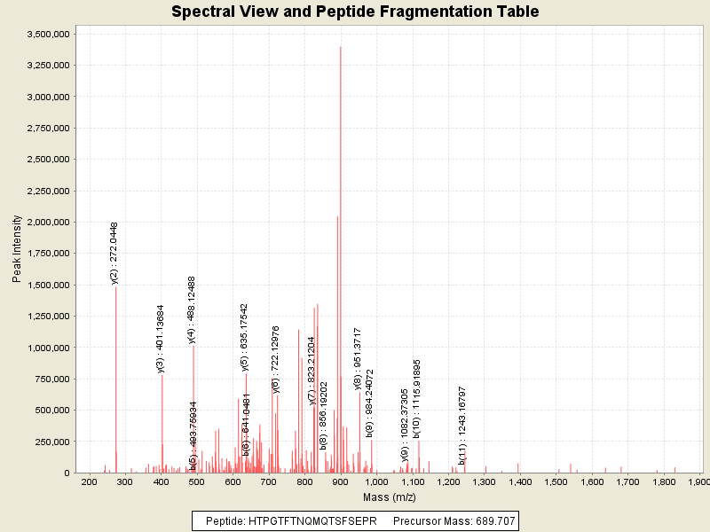 Observed intensity of peptide: 2.7251728E7