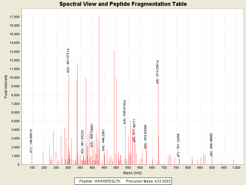 Observed mass of peptide: 433.5093383789, (+3)