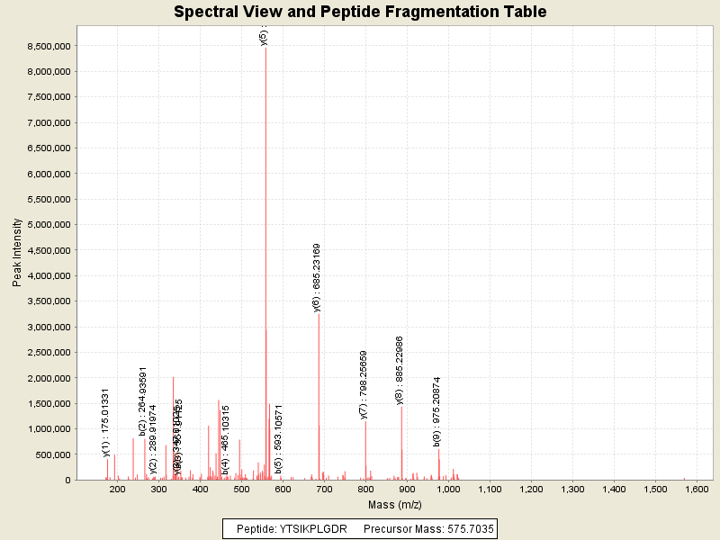 Observed mass of peptide: 575.7034912109, (+2)