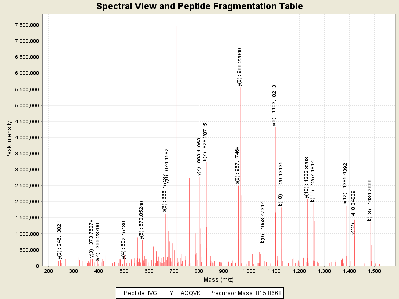 MS/MS Fragmentation of: IVGEEHYETAQQVK