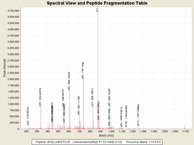 Observed intensity of peptide: 3.0292696E7