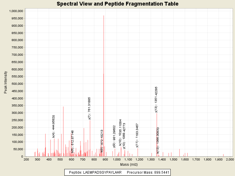 Observed mass of peptide: 899.5440673828, (+2)
