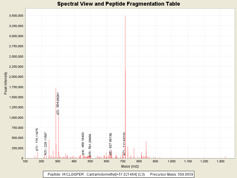 Observed mass of peptide: 509.0659179688, (+2)