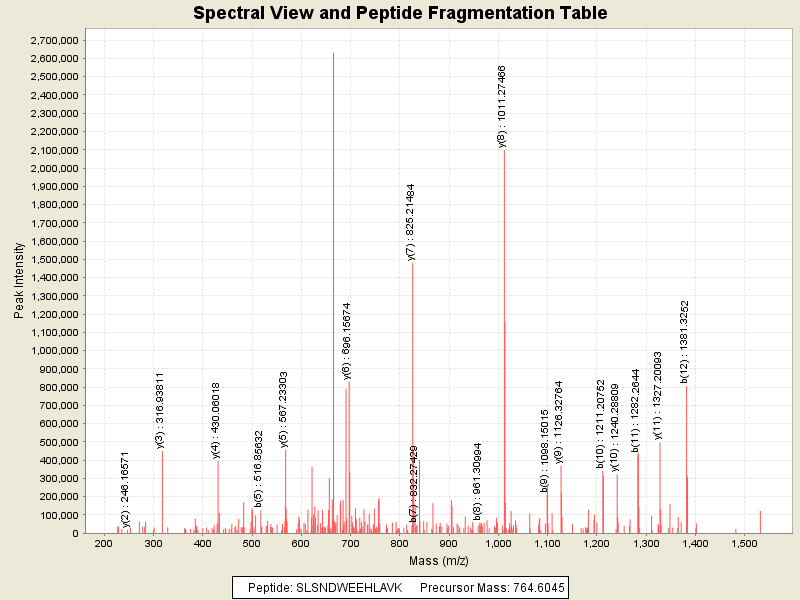Observed intensity of peptide: 4.3053688E7