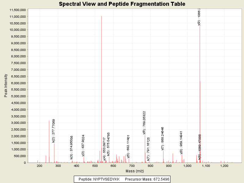 Observed intensity of peptide: 7.7453216E7