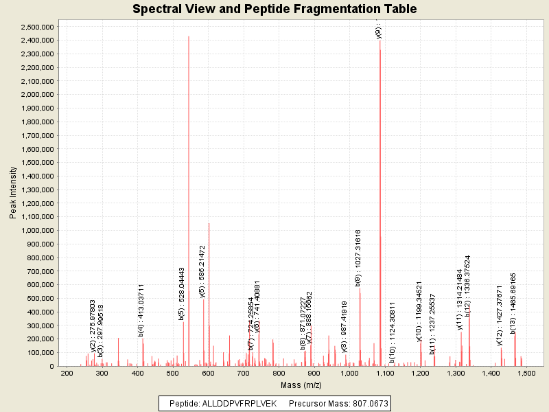 Observed intensity of peptide: 7.2202016E7