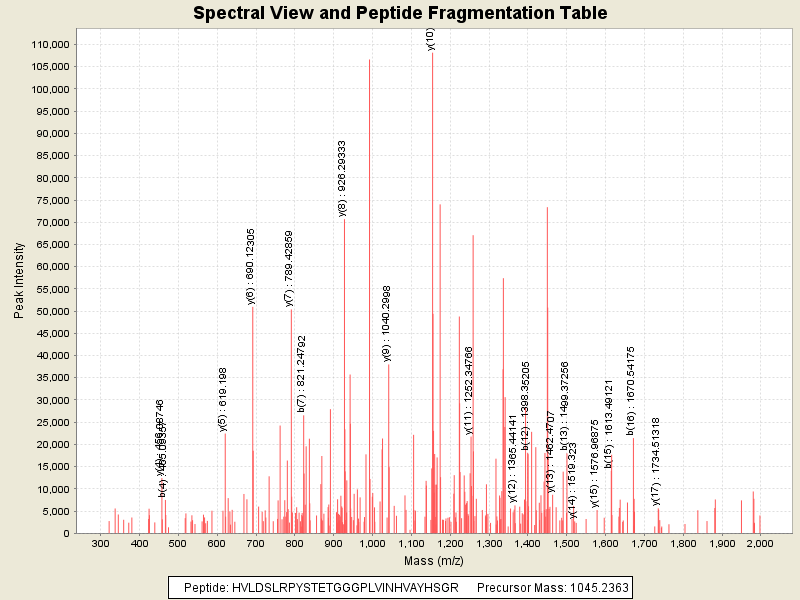 Observed intensity of peptide: 4145566.0