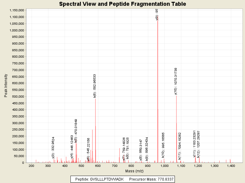 MS/MS Fragmentation of: GVSLLLPTDVVIADK