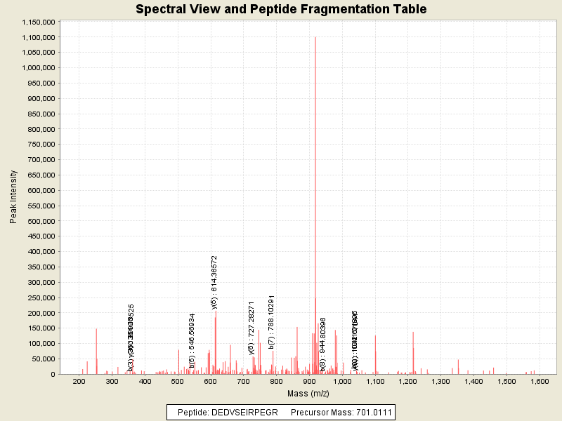 Observed intensity of peptide: 8165488.0