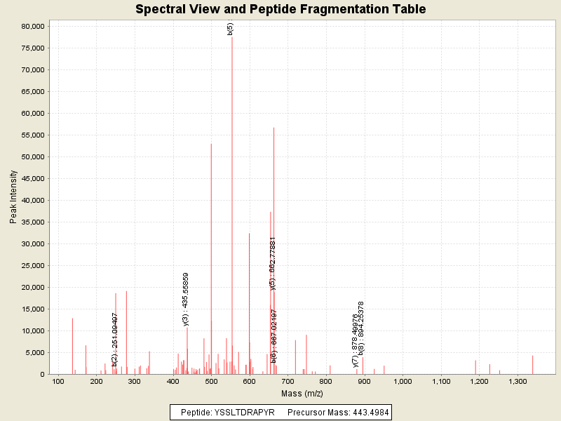 Observed intensity of peptide: 1432660.0