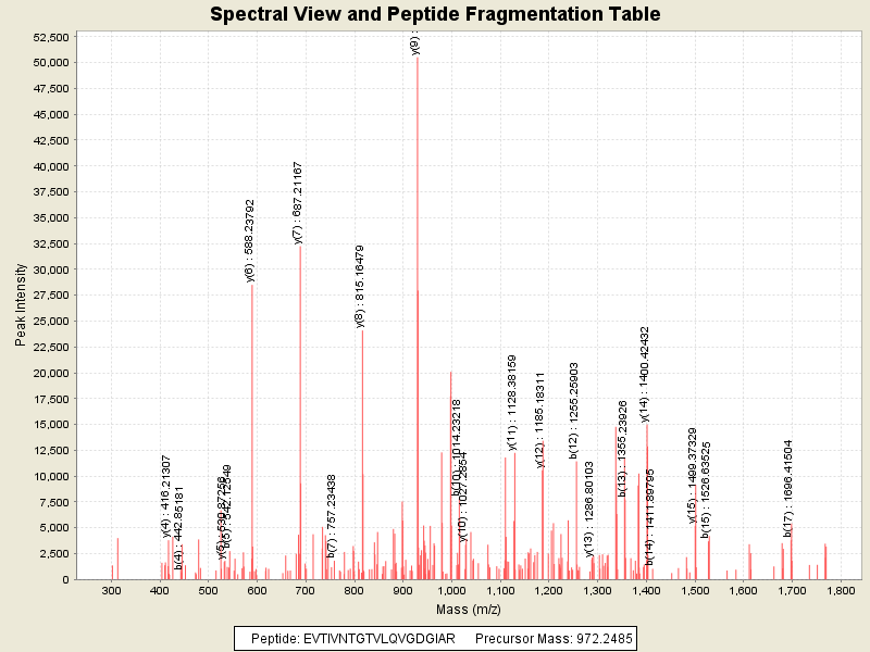 Observed intensity of peptide: 616350.0