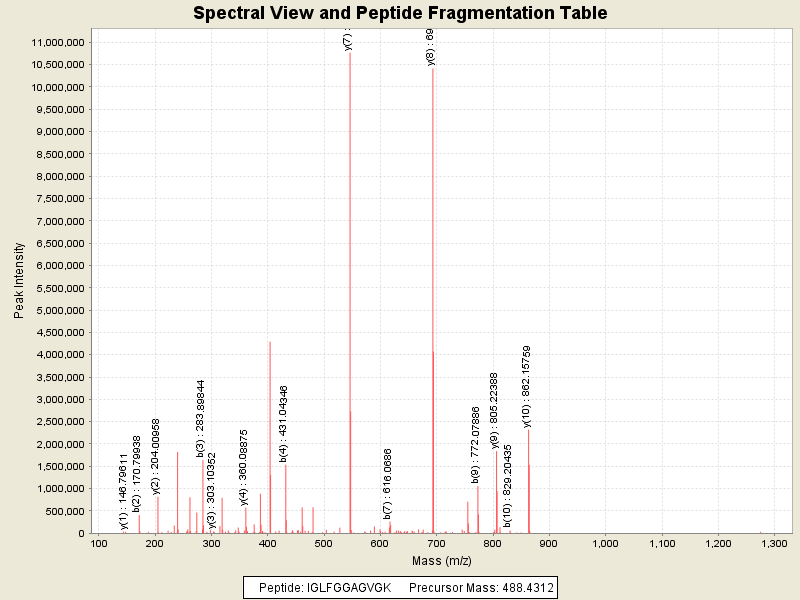 Observed intensity of peptide: 6.5363256E7
