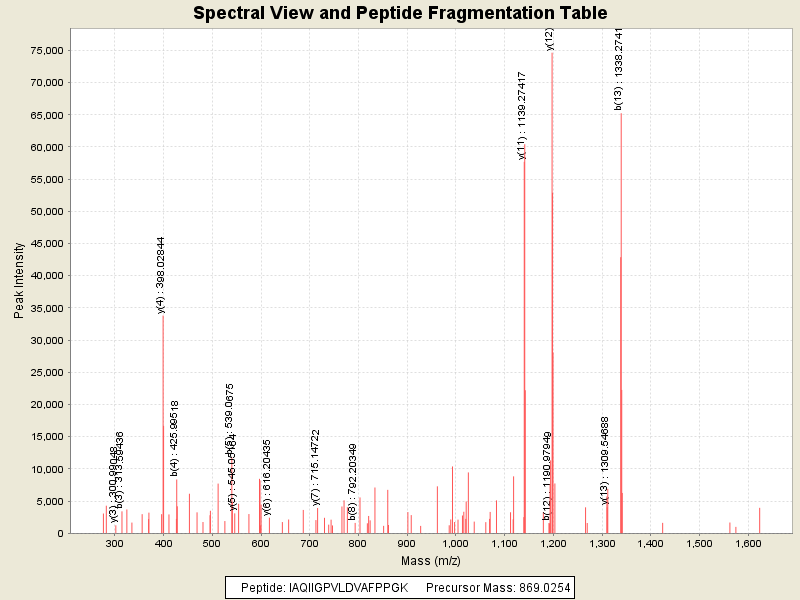 MS/MS Fragmentation of: IAQIIGPVLDVAFPPGK