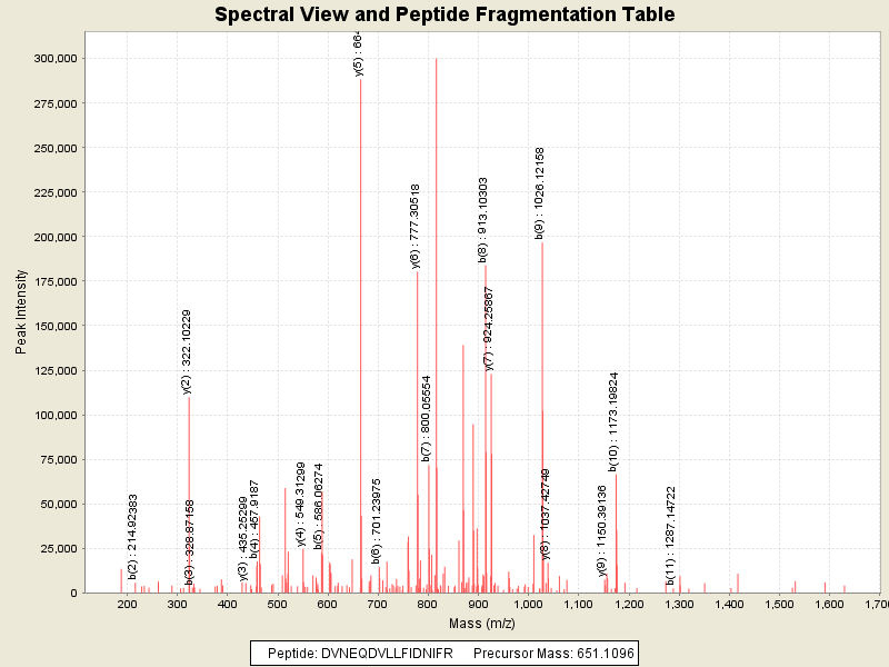Observed intensity of peptide: 3160460.0