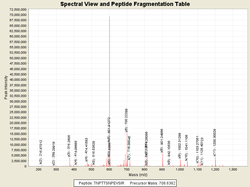 Observed intensity of peptide: 7.13136E7