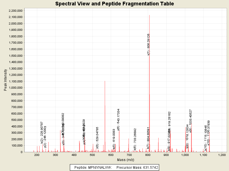 MS/MS Fragmentation of: MPNIYNALVVK