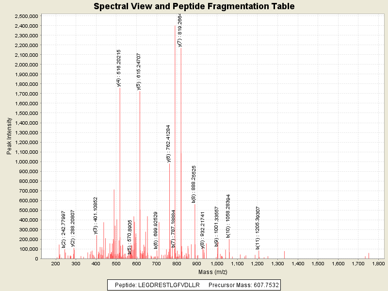 Observed intensity of peptide: 1.9843168E7