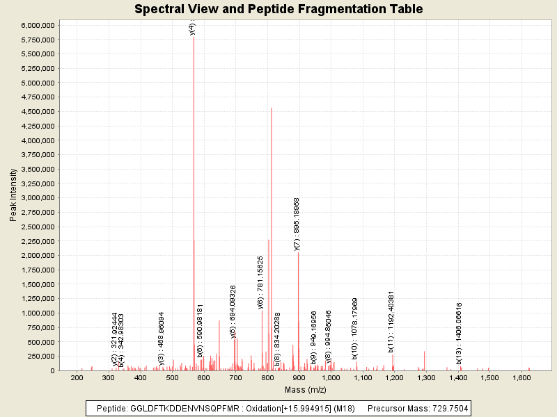 Observed intensity of peptide: 5.7526424E7