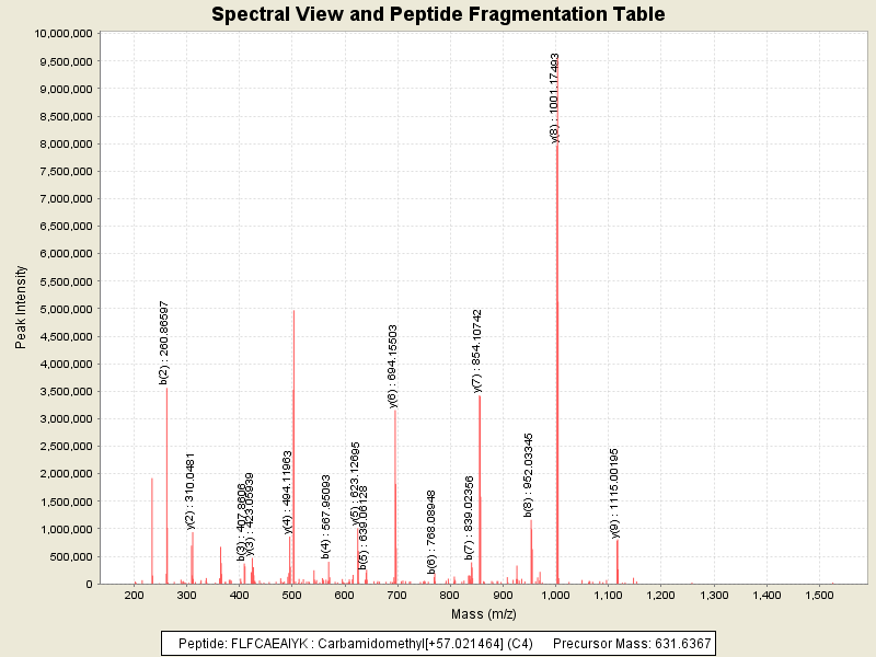Observed intensity of peptide: 2.4952896E8