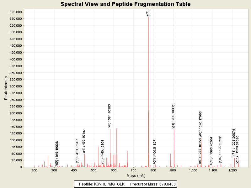 Observed intensity of peptide: 3777841.0
