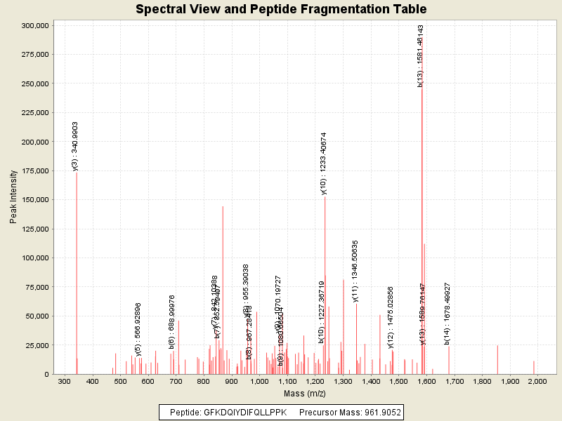 Observed intensity of peptide: 1.3075796E7