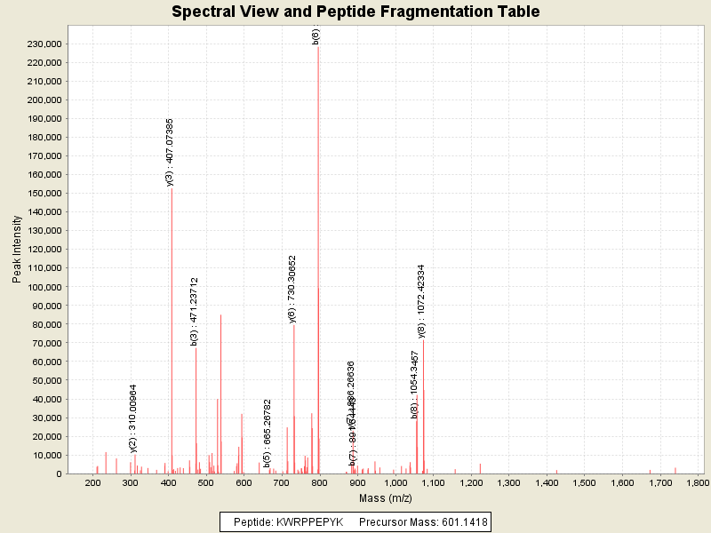 Observed intensity of peptide: 856345.0