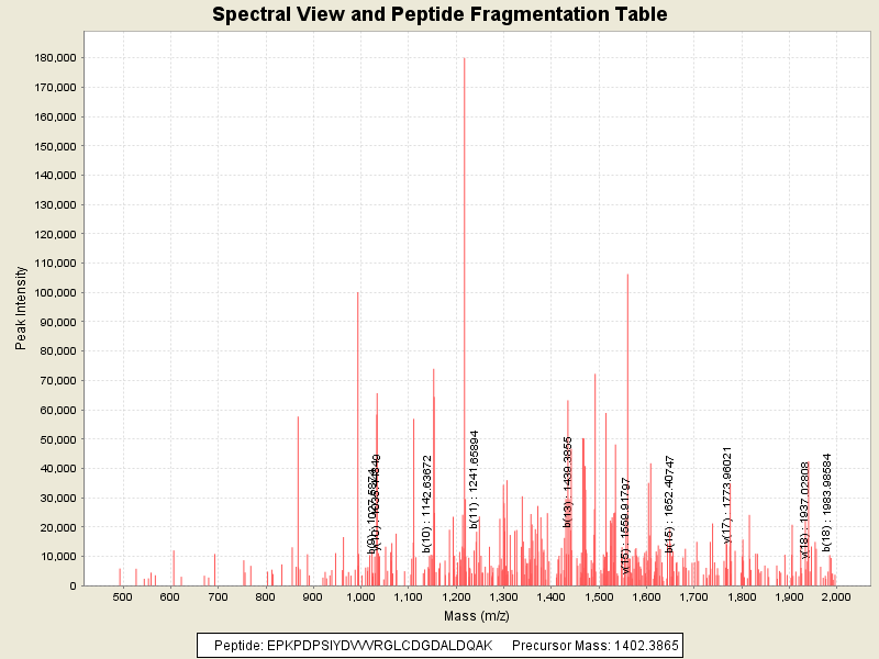 Observed intensity of peptide: 3238536.0