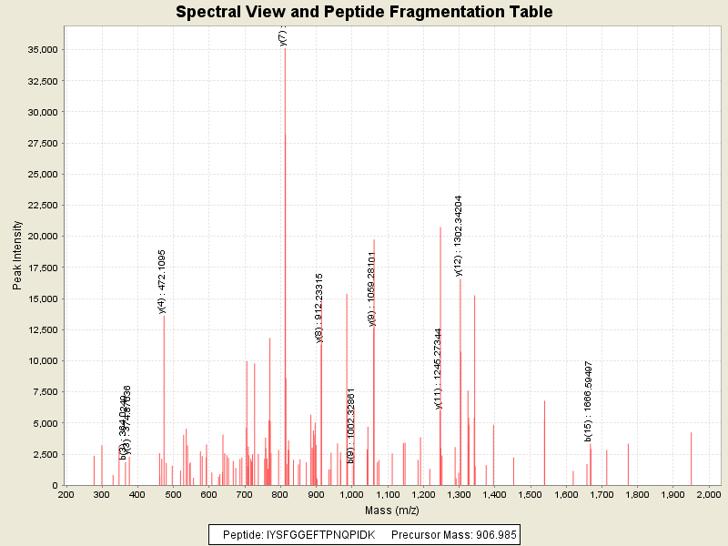Observed mass of peptide: 906.9849853516, (+2)
