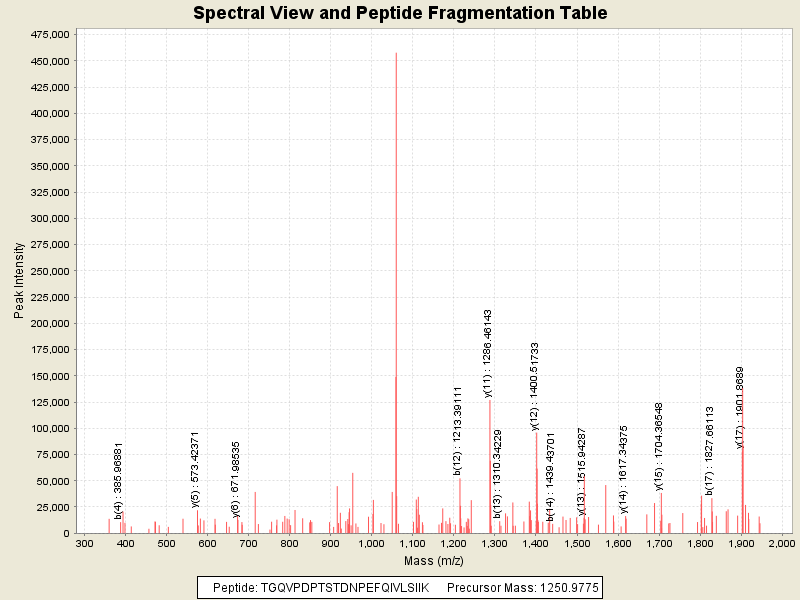 Observed intensity of peptide: 1.606383E7