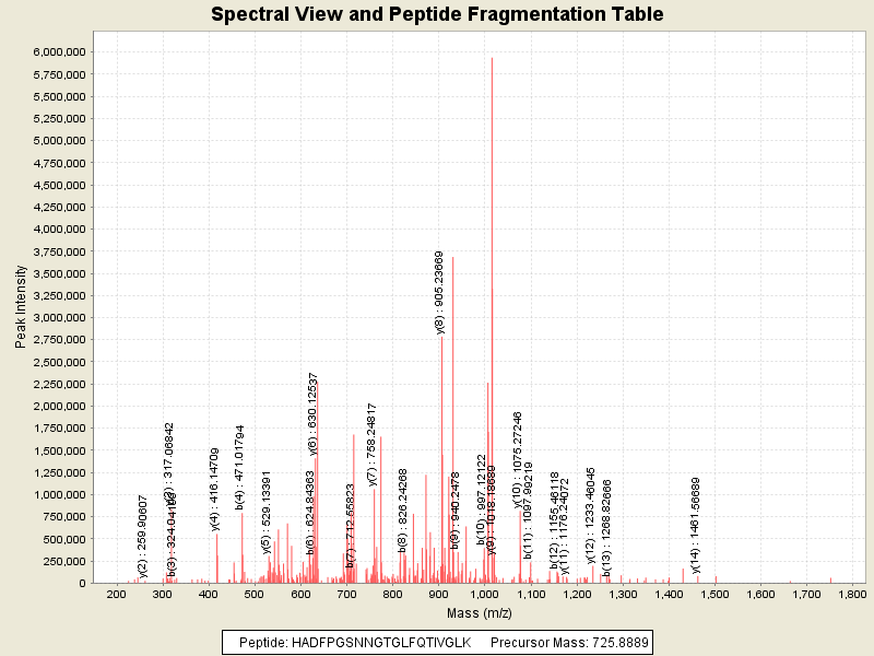 Observed intensity of peptide: 4.09384E7