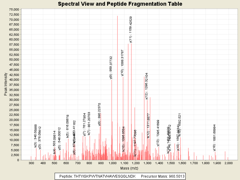 Observed intensity of peptide: 1903923.0