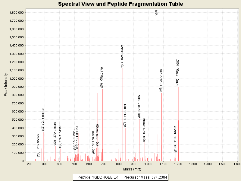 Observed mass of peptide: 674.2384033203, (+2)