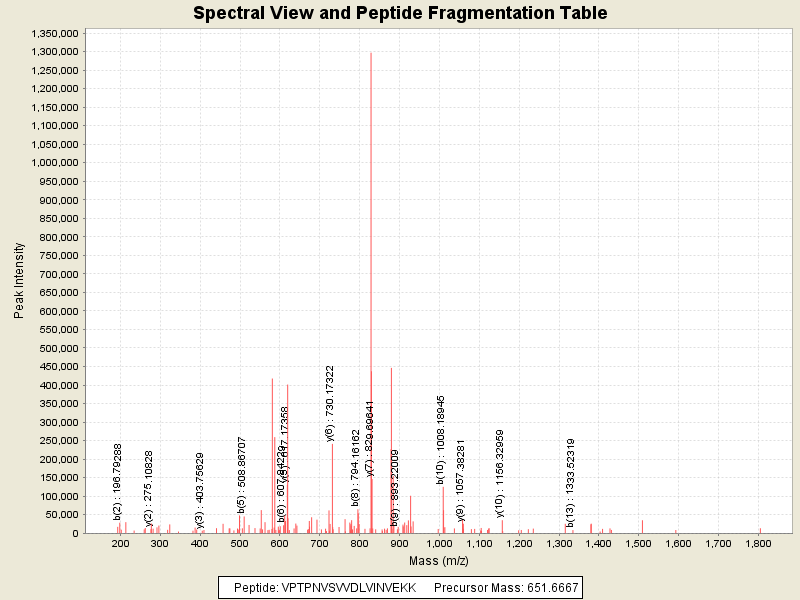 Observed intensity of peptide: 7985657.0