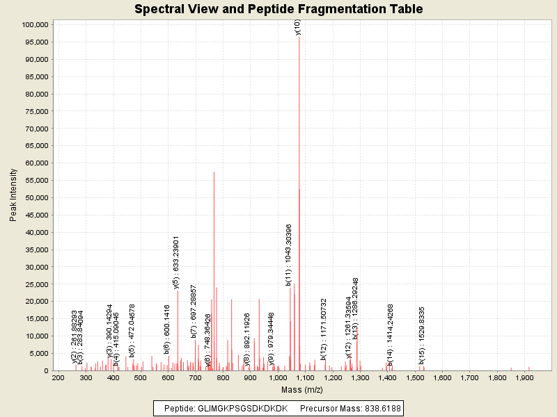 Observed intensity of peptide: 1014486.0