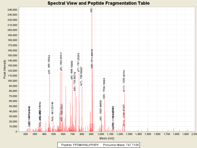 Observed intensity of peptide: 2388948.0